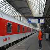 In Amsterdam hebben we een uur de tijd voor de City Night Line vertrekt. Op het laatste moment moeten we opeens naar een ander perron en dat betekent fietsen de trap af en weer op sjouwen. Dat valt niet mee met alle bagage erop. Net op tijd zitten we in de trein. Onze ‘hotelkamers” zijn prima en met de schuifdeuren open hebben we een zeer gezellige avond met z’n allen bij elkaar. Onze buren sponsoren ons met €100,00 nadat ze op de hoogte zijn gesteld van onze fietsactie.