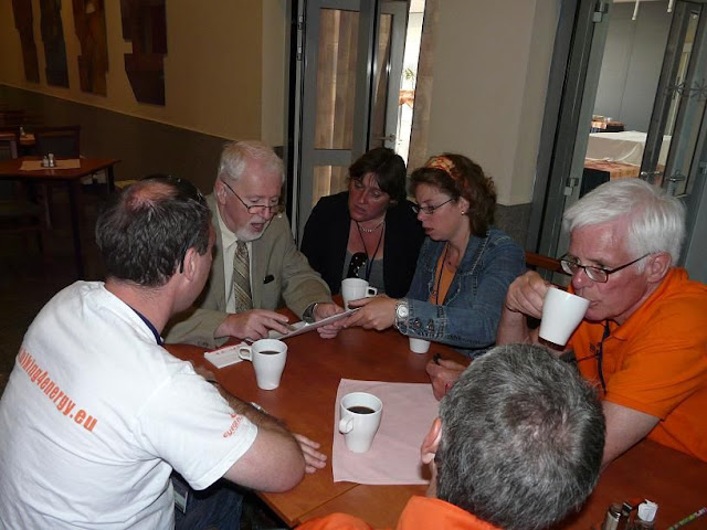 Het ontbijt is om half zeven. want we worden om kwart over zeven opgehaald door Jana en naar Hotel Olympic Tristar gebracht. Wij zijn uitgenodigd voor de voordracht van Prof. Dr. Jiri Zeman op het 6e ISNS Medisch Congres “Neonatal Screening” met als thema: From suspision to diagnosis confirmation in children with inborn errors of metabolism. Na de voordracht hebben Marleen, Sjef en de mensen van Biking4Energy een interview met een journalist van een vooraanstaand medisch tijdschrift. Er wordt een artikel geschreven over het congres en mede over het gezin van Marleen en Sjef en onze fietstocht. We moeten voor donderdag ook een aantal “actiefoto’s” aanleveren. Opgestapeld in de auto gaan we weer terug naar het hotel waar we met z’n allen gaan lunchen. Het duurt allemaal nogal lang en de fietser worden een beetje ongeduldig. Daarna nog een probleempje met de betaling maar door bemiddeling van Jana wordt alles weer opgelost. Om half twee wordt de nieuwe fietsgroep uitgezwaaid door de achterblijvers. Leny, Johan en Frank blijven nog een paar dagen in Praag en Marleen, Sjef en de kindjes vliegen vanavond weer terug naar huis. Jan Willem Schram, de cameraman en documentairemaker volgen vandaag de verrichtingen van de fietsers. We worden in Praag gefilmd met alle prachtige beelden van de stad. Na een paar kilometer is er een omleiding waarin we de volgauto kwijt raken. Wij fietsen langs de rivier Berounka over een slecht grind- en keienpad. We worden gewaarschuwd voor een supersteile afdaling en we gaan over een lange spoorbrug. De telefoon brengt uitkomst en we ontmoeten elkaar weer in Cernosice waar blijkt dat er een probleem is met de filmapparatuur. Gelukkig kunnen we wel door en kan er gefilmd worden. Vandaag weer prachtige beelden: een mooi glooiend landschap, de zon tussen de bomen en gele koolzaadvelden. In het hotel aangekomen kunnen we even onszelf bekijken in volle actie. Prachtige beelden en we voelen ons net de coureurs van de Tour de France. Een heerlijk diner en daarna brengt Frans Jan Willem terug naar Praag. Een heel goed begin van deel 2 van onze fietstocht. We zullen de jonge groep van de eerste twee weken missen, we fietsen nu alleen met opa’s en oma’s!!!